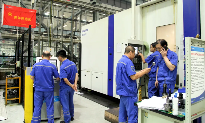 凌晨三點的中國船舶集團旗下重慶紅江聯合廠房,室外,三伏天近40℃的高溫帶來的酷熱并沒有因入夜而降下來;室內,機床轟響燈火通明,一號車間最先進的三臺臥式加工中心開足馬力全速運轉。