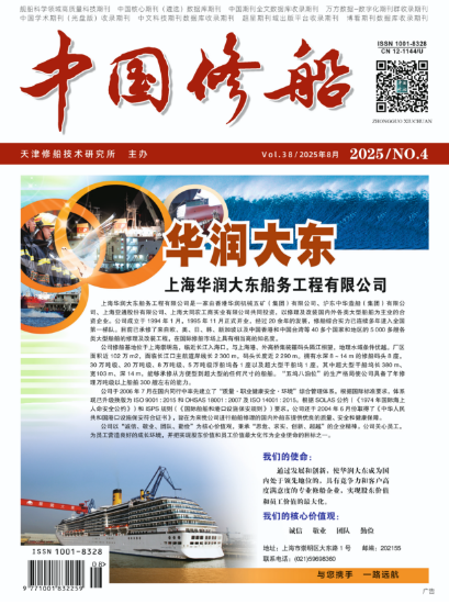 《中國修船》期刊于1987年創辦,是國內公開發行的修船行業綜合性科技期刊,是中國造船工程學會修船學術委員會的會刊。主管單位是中國船舶集團有限公司,主辦單位是天津修船技術研究所,由《中國修船》編輯部編輯出版。《中國修船》設置“技術交流”“維修理論”“海洋平臺”“經營管理”“經驗集錦”等欄目,主要為修船業、航運界的科研院所及相關的船舶配套廠提供船舶維修信息、管理與技術服務,已成為工程技術人員和管理干部學習交流的園地,是了解中國修船市場、工藝技術及設備發展動向的重要窗口。
