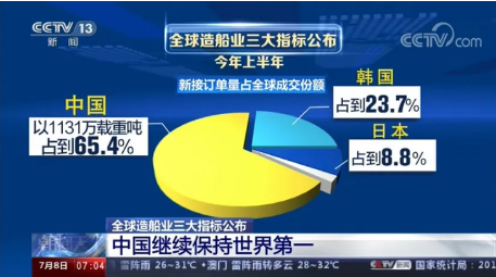 全球權(quán)威航運(yùn)造船機(jī)構(gòu)公布的最新數(shù)據(jù)顯示,今年上半年,全球造船業(yè)三大指標(biāo),中國再次領(lǐng)先,繼續(xù)保持世界第一的紀(jì)錄。