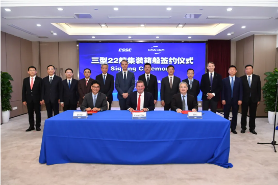 3型22艘綠色集裝箱船簽約,中國船舶集團(tuán)喜獲歷史最大單筆集裝箱船訂單。
