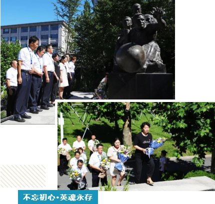 烈士家屬、抗災(zāi)搶險英雄群體成員、七六〇所黨委委員共同在烈士雕像前敬獻(xiàn)鮮花。