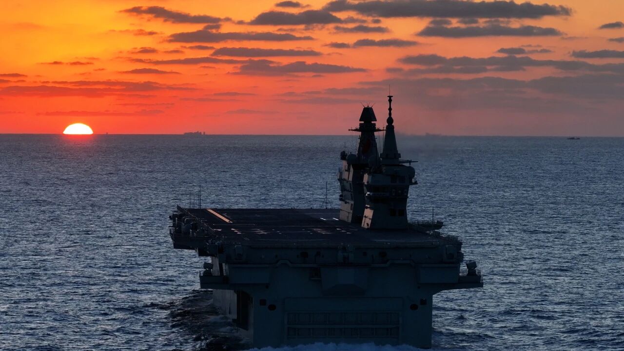▲在夕陽下航行的四川艦 霍陽柯 攝