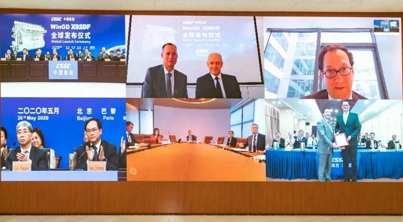 ????發(fā)布儀式采用視頻形式,在中國北京、上海,法國巴黎、馬賽和瑞士溫特圖爾全球五地遠(yuǎn)程連線同步舉行。在各方嘉賓見證下,WinGD X92DF通過BV(法國船級社)型式認(rèn)可,雷凡培宣布向全球發(fā)布。