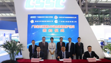 2020年5月,中國船舶集團聯合中國海洋石油集團有限公司與廣東省人民政府簽署了《廣東省內河船舶LNG動力改造項目合作框架協議》。本次海博會上,中國船舶集團旗下廣州船院與合作伙伴隆重舉行“廣東省內河船舶LNG動力改造及供氣協議”簽約儀式。該項目的簽約是推動廣東省內河航運綠色發展的重要開端,是優化水運行業用能結構,實現轉型升級的重要舉措。