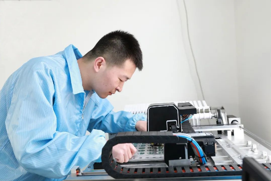 丁琪手工完成的電路板用于七六〇所自主研發的某重要設備,屬目前我國最先進的國產化設備,成功實現了進口設備的國產化替代。近年來,鑒于該設備需求量激增,七六〇所引進了一套半自動生產線,丁琪利用圖中設備設計了一套與該生產線配套的模具,不僅使該生產線產量提高了近10倍,而且保持質量領先。