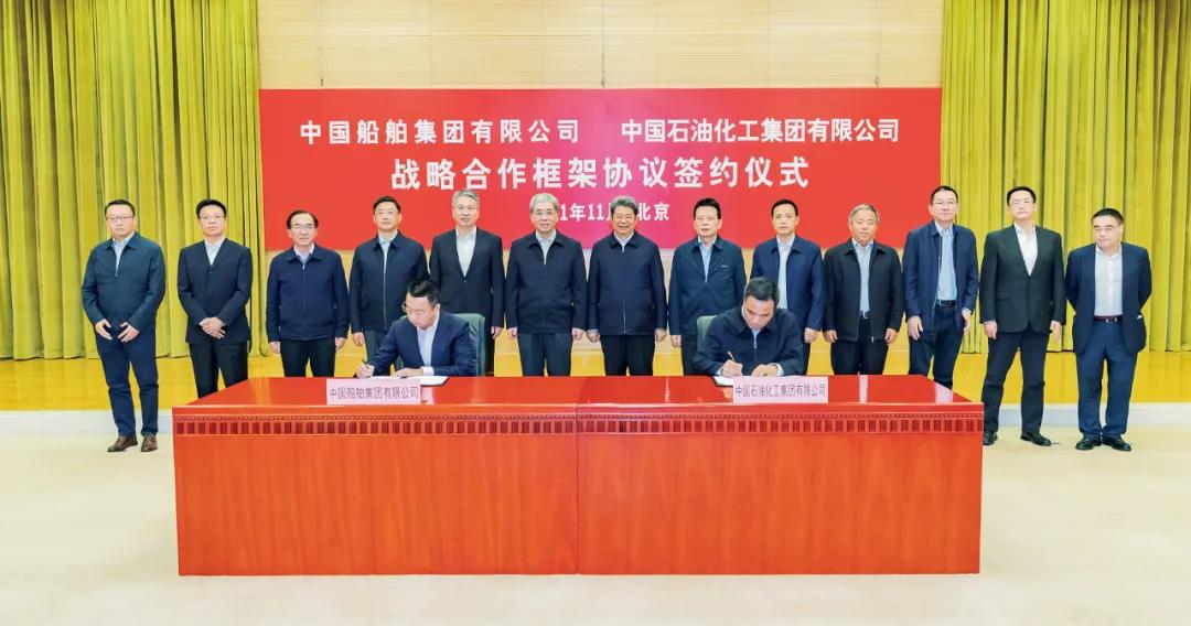 中國(guó)船舶集團(tuán)、中國(guó)石油化工集團(tuán)有關(guān)部門負(fù)責(zé)人參加簽約活動(dòng)。