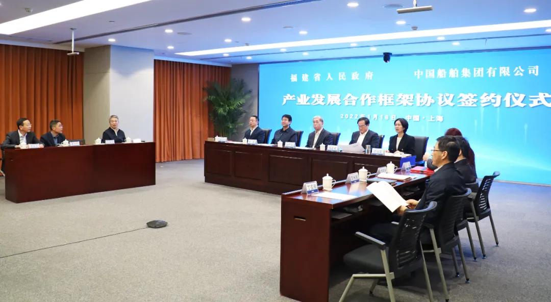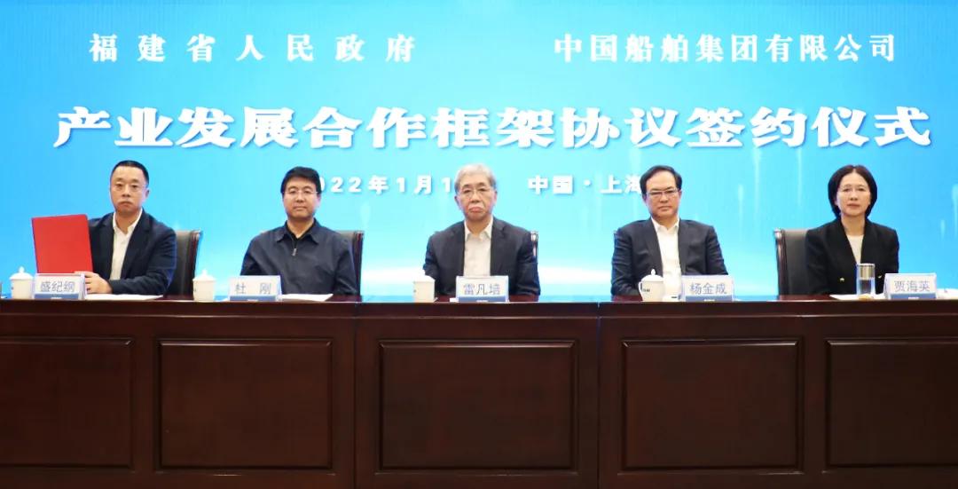 1月18日,中國船舶集團有限公司與福建省人民政府通過“云簽約”方式簽署戰(zhàn)略合作協(xié)議。中國船舶集團黨組書記、董事長雷凡培,黨組副書記、總經(jīng)理楊金成,黨組副書記、董事杜剛,黨組成員、總會計師賈海英,黨組成員、副總經(jīng)理盛紀(jì)綱;福建省委書記尹力,省委副書記、代省長趙龍,省委常委、常務(wù)副省長郭寧寧,省委常委、秘書長吳偕林,副省長康濤出席簽約儀式。盛紀(jì)綱、郭寧寧分別代表雙方在協(xié)議上簽字。