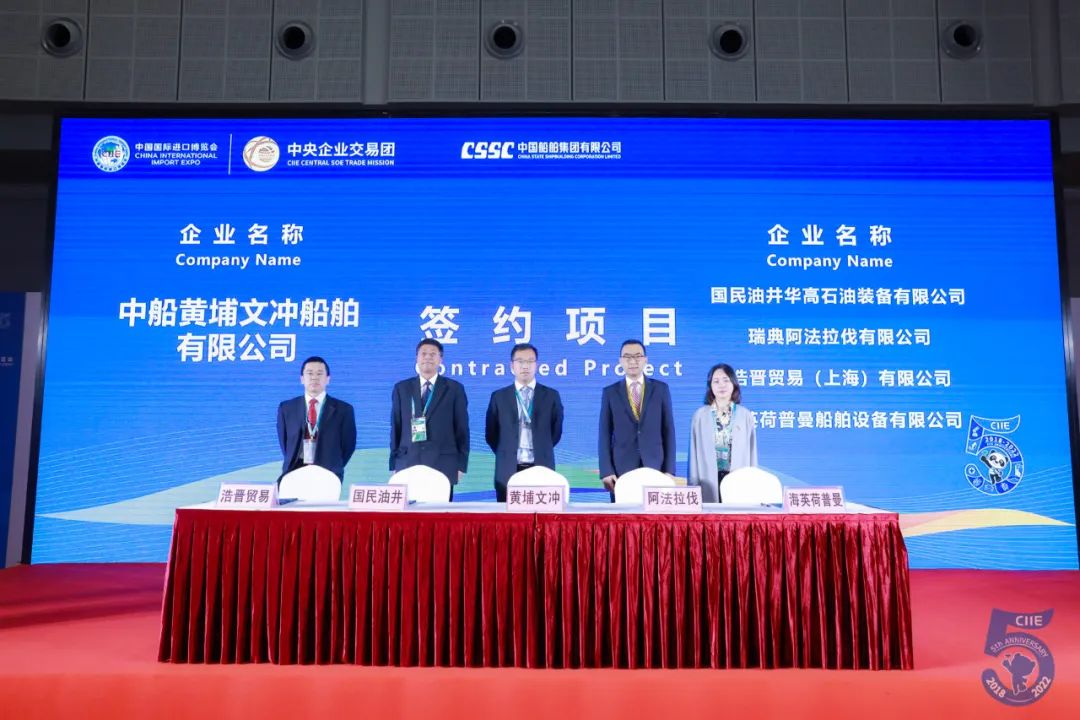 在簽約儀式上,中國船舶集團旗下5家企業與12家國際合作伙伴進行14個項目的集中簽約,是繼11月2日中國船舶集團2022現代供應鏈建設(供應商)大會旗下3家企業與6家國際合作伙伴進行7個項目集中簽約之后的又一重要簽約活動,累計總金額達4.5億美元,同比增長205.5%。這是中國船舶集團在國務院國資委領導下,深入貫徹落實習近平總書記關于中國國際進口博覽會“不僅要年年辦下去,而且要辦出水平、辦出成效、越辦越好”的重要指示精神,以統籌推進疫情防控為前提,聚焦“開放主題”,秉承“共擔、共治、共享”的開放精神,積極承擔央企責任和市場風險,加強船舶工業內外生態共治,切實共享改革發展成果,著力推動國際國內市場融合互鑒的重要體現,充分發揮中國船舶集團作為中國船舶工業產業鏈鏈長的主體支撐和融通帶動作用,全力構建貿易自由化、經濟全球化產業鏈和供應鏈新格局的具體實踐。