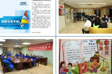 風(fēng)帆公司、綜合院等單位發(fā)布合規(guī)手冊(cè),組織簽署合規(guī)承諾和合規(guī)考試;中船澄西、投資公司、七一一所、七二六所等單位精心制作并設(shè)置憲法宣傳展板;江南造船、中船九院等單位開(kāi)展憲法法律知識(shí)問(wèn)答,實(shí)現(xiàn)以考促學(xué);廣州公司持續(xù)開(kāi)展“送法進(jìn)校園”憲法宣傳活動(dòng),將法治學(xué)習(xí)延伸到所屬技校、幼兒園;七一〇所、七一五所等單位開(kāi)展法律咨詢志愿服務(wù)活動(dòng),對(duì)外樹(shù)立良好的“法治形象”;駐香港企業(yè)中船資本、中船租賃大力宣傳憲法及香港基本法、香港國(guó)安法,提升員工憲法法治意識(shí)。