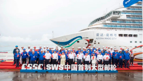 9月12日下午,中國首制大型郵輪“愛達·魔都號”經過六天五夜1630海里的海上航行,穩穩靠泊于中國船舶集團旗下外高橋造船4號碼頭。中國船舶集團黨組書記、董事長溫剛,黨組成員、副總經理孫偉,紀檢監察組組長、黨組成員李佳穎到碼頭迎接。