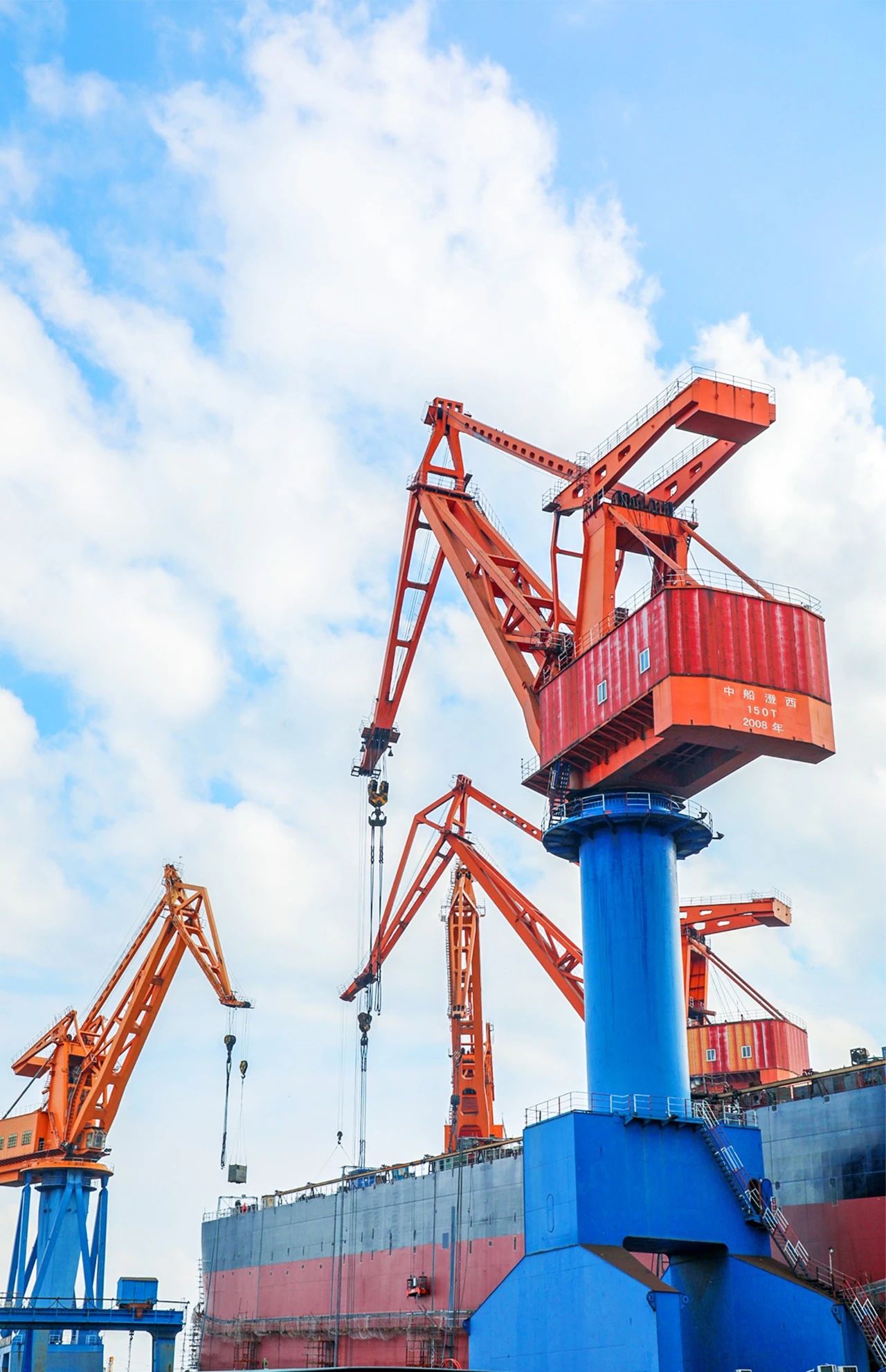 本幅作品拍攝于中船澄西主建船型82000噸散貨船船臺(tái)搭載過程中,高矮錯(cuò)落的吊臂構(gòu)成了如音符一般的工作樂潮。