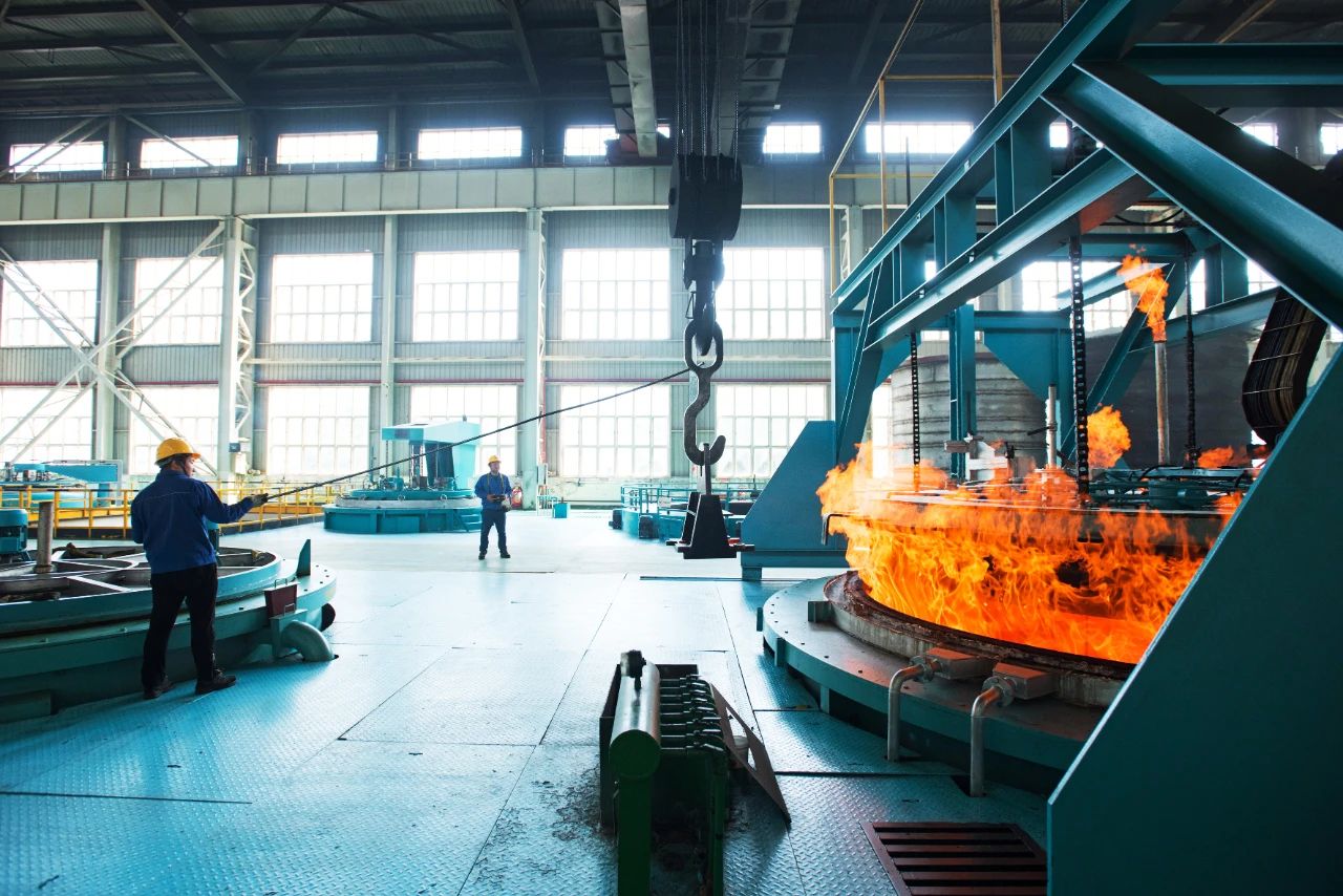 熱處理工人們面對(duì)著高達(dá)800攝氏度的高溫火焰,毫無懼色,依然穩(wěn)定地操作著設(shè)備。