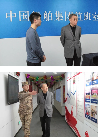 2月8日,中國(guó)船舶集團(tuán)有限公司黨組書(shū)記、董事長(zhǎng)溫剛在集團(tuán)公司總部檢查春節(jié)總值班安排和中控室運(yùn)行情況,走訪慰問(wèn)堅(jiān)守崗位員工。