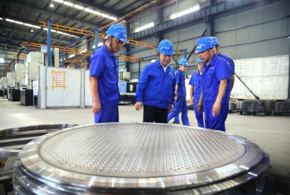 王國強深入科研生產一線,調研了相關車間、實驗室、勞模創新工作室,察看了智能制造中心、重點產品、相關技術進展;慰問了勞模工匠、一線員工,與他們就現場管理看板優化、工藝改善等交流互動,勉勵他們健康生活、快樂工作,叮囑相關單位負責人要做好防暑降溫工作;聽取了相關二級管理單位生產經營、深化改革、科技創新、人才培養、黨的建設等方面情況匯報。