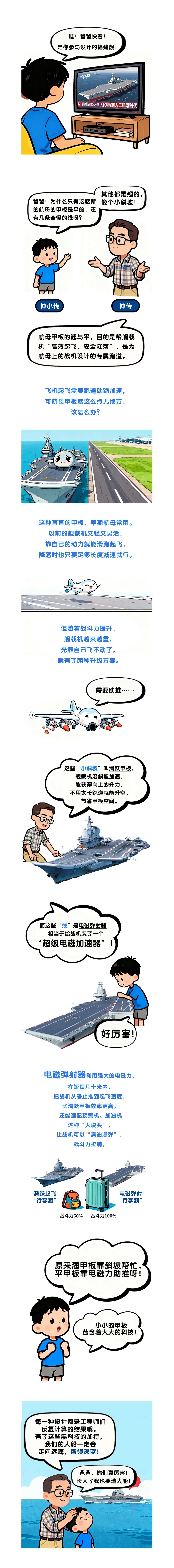 航母建造背后藏著多少“黑科技”和技術突破?別著急,這就告訴你!我們將推出航母科普系列,通過通俗易懂的圖文解析,為大家揭開航母的“硬核”面紗。本期作為系列開篇,聚焦航母甲板設計。甲板上的“線”和“斜坡”有何作用?為何福建艦的甲板是平的?從滑躍甲板的升力輔助,到電磁彈射的強力助推,每一種設計都關乎艦載機能否“高效起飛、安全降落”。