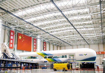 中國(guó)商飛上海飛機(jī)設(shè)計(jì)研究院內(nèi)的鐵鳥(niǎo)試驗(yàn)臺(tái)。(丁汀 攝)