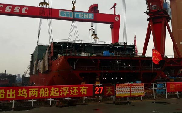 ????3月4日,中國船舶集團所屬廣船國際有限公司建造的阿爾及利亞豪華客滾船完成3個艉跳板的裝焊任務,建造進度又推進了一大步。該船共有4個艉門、3個艉跳板,每個跳板都承擔著不同的功能。這樣的設計,首先可以實現人車分流,更加安全