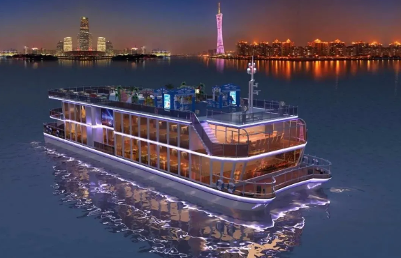 ????280客位珠江夜游船總長38.8米,型寬12.0米,型深3.2米,航速10.0節(jié),是粵港澳大灣區(qū)首艘入級商業(yè)運營新能源客船,外觀設計新穎獨特,純電池動力突顯低噪音、低排放、綠色環(huán)保的優(yōu)勢,對于推動粵港澳大灣區(qū)旅游和交通產(chǎn)業(yè)的綠色發(fā)展具有重要意義。