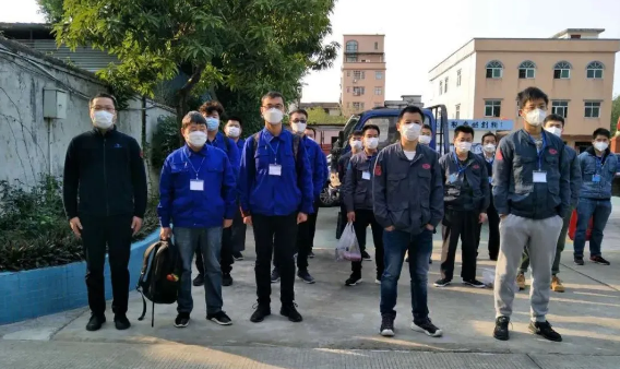 ????帶隊逆行的是鵬力塑造副總經理王仕杰,一人承擔所有的外圍協調工作,不僅管好技術團隊的吃住行和安全防疫工作,還找到了非常緊缺的試機無紡布原料和口罩耳繩焊接機,極大地支撐了后續研制生產工作。