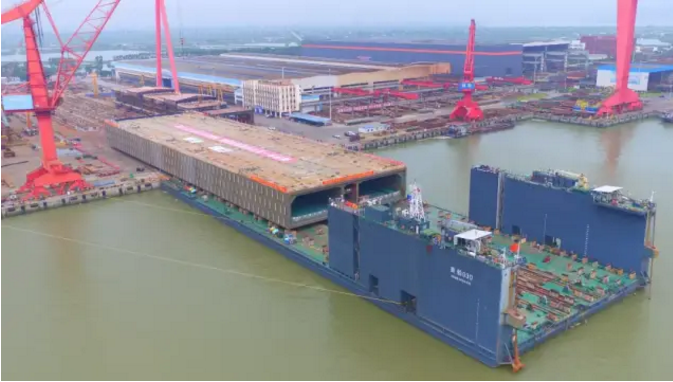 ????深中通道沉管隧道鋼殼由中國船舶集團旗下廣船國際、黃埔文沖承建。