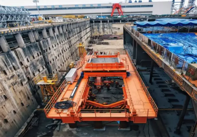 ????深中通道沉管鋼殼尺度全世界最寬,黃埔文沖為了解決現有駁船浮箱之間的有效寬度不足的問題,對原有的“黃船030”號大舉力下水駁船進行了全面改裝,突破萬噸管節下水、拖運、上岸等系列性難題。