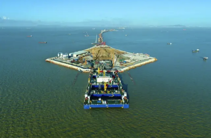 ????在沉管管節安放前,需要對基槽進行碎石整平。由中國船舶集團旗下上海船院研發設計的自升平臺式碎石鋪設整平船“一航津平2”號上場。該船集基準定位、石料輸送、高精度鋪設整平、質量檢測驗收功能于一體,被譽為深水碎石鋪設的“3D打印機”。