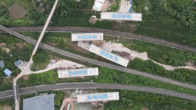 此次轉體的五段橋梁梁體為重慶新建快速路二橫線物流園區至禮白立交工程跨渭井、蔡歌聯絡線鐵路主線橋。