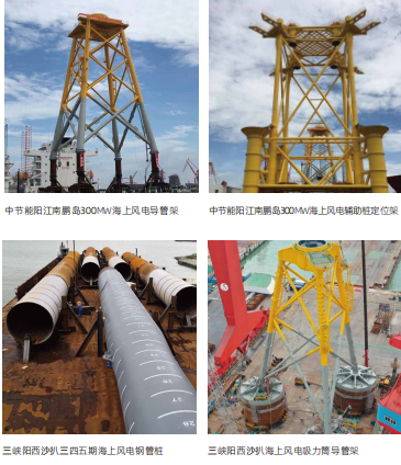 海上基礎類風電產品包括海上風電導管架、輔助樁定位架、穩樁平臺、鋼管樁、吸力筒導管架、風電單樁等。