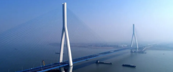 該橋跨江主橋長約1510米,主跨760米,橋面寬46米,為雙塔雙索面鋼箱梁斜拉橋。總用鋼量4.88萬噸,相當于6座埃菲爾鐵塔的用鋼量,全部由武船重工股份負責制造安裝。