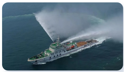 消防船是對港內船舶或岸邊臨水建筑物消防滅火工作的專業船。船上備有大功率水泵系統、高壓噴水槍和滅火劑等消防器材,并配有救護人員和醫療設備,具備良好的耐波性和操縱性,能在狹窄水道或擁擠的港口內執行消防任務。為適應油船消防還設置專門的消防泡沫炮;為了能更深進入火區救火,船上還設有水幕裝置。在進入火區時,全船由水幕罩著。