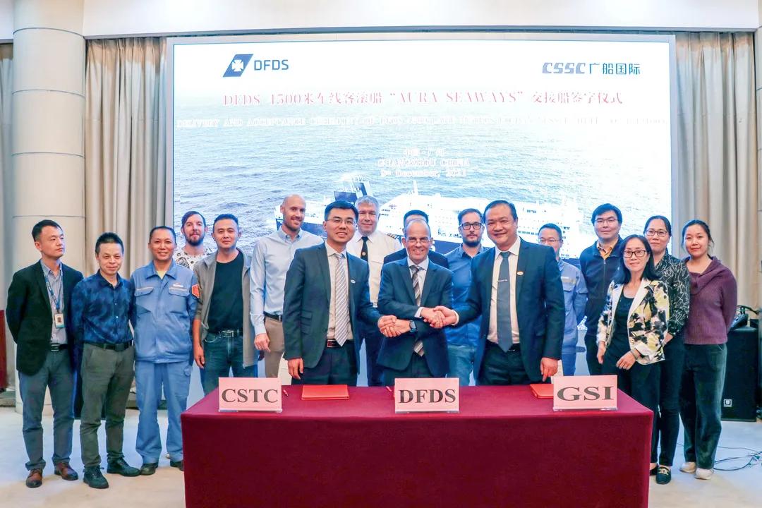 12月9日,由中國船舶集團旗下廣船國際聯合中船貿易為北歐最大的航運和物流公司,丹麥DetForenede Dampskibs-Selskab(簡稱:DFDS)航運公司建造的600客/4500米車道豪華客滾船首制船實現“云交付”。