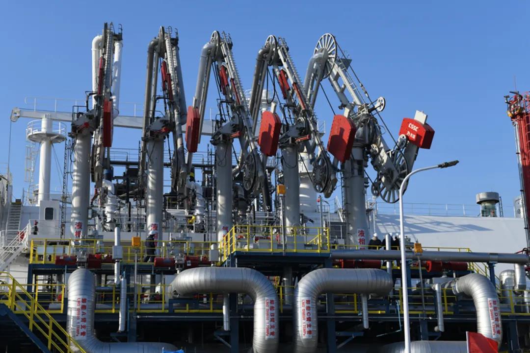 當(dāng)天中午,隨著“中能連云港”號液化天然氣運輸船順利靠港,即將投用的天津LNG接收站二期碼頭現(xiàn)場熱火朝天。15點30分左右,首套國產(chǎn)卸料臂與國內(nèi)外四臺卸料臂先后開始船岸對接工作。