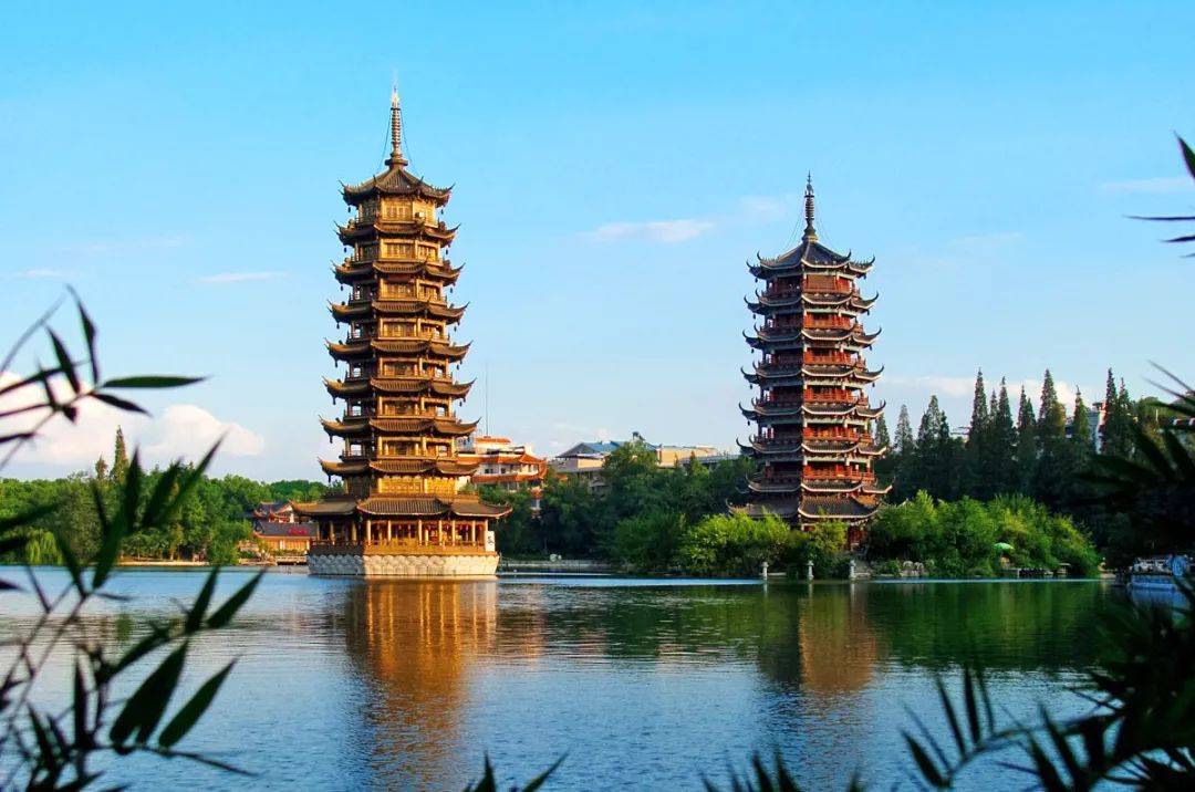 除了在江城武漢,武漢重工還建造過(guò)桂林市名片之一的杉湖銅塔——塔高47米,共9層,創(chuàng)造了三項(xiàng)之最:中國(guó)第一座銅塔、中國(guó)第一座最高的銅質(zhì)大型工藝美術(shù)建筑、中國(guó)第一座最高的水中高塔。