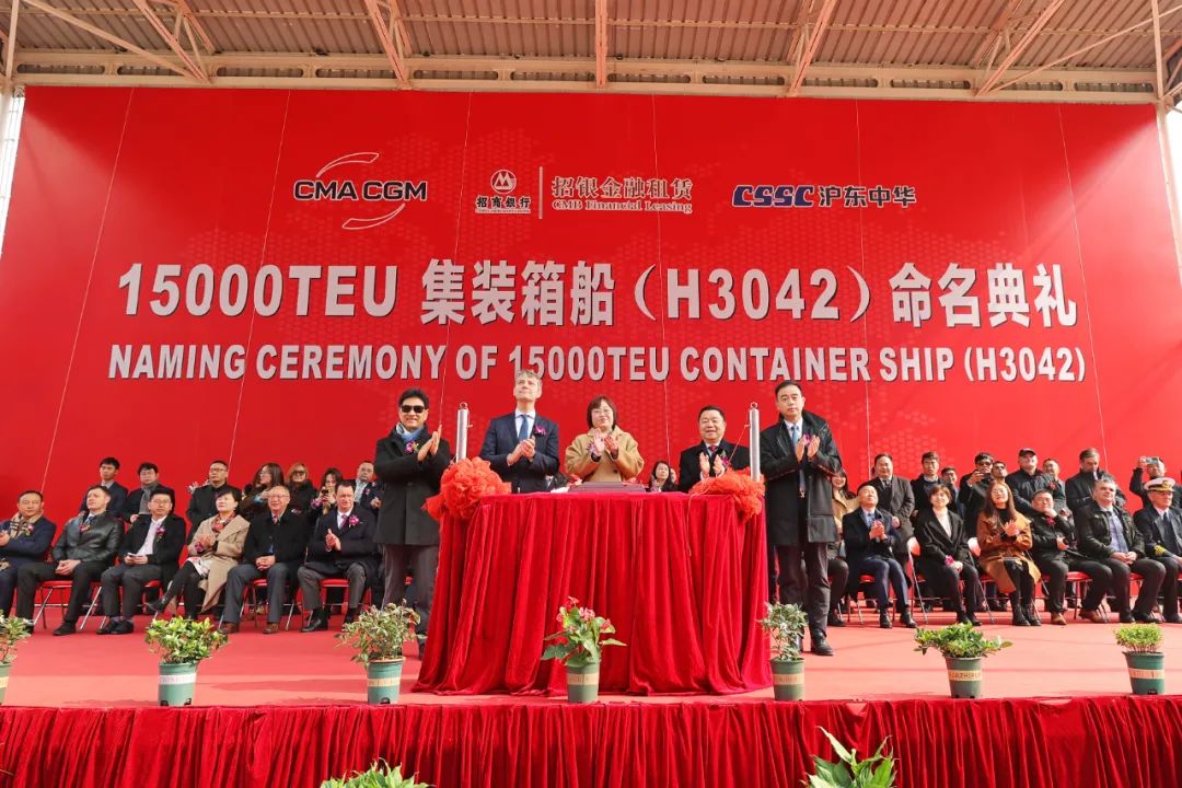 2月28日,中國船舶集團有限公司旗下滬東中華造船(集團)有限公司聯(lián)合中國船舶工業(yè)貿(mào)易有限公司為法國達飛海運集團建造的15000TEU超大型集裝箱船“達飛·阿多尼斯”號在上海命名。這不僅是為達飛集團量身定制的5艘常規(guī)動力系列箱船中的最后一艘,實現(xiàn)了平均每月命名交付一艘的既定目標(biāo),也是繼由該公司建造的5艘全球首創(chuàng)最大、最先進23000TEU雙燃料動力集裝箱船之后,又一款被市場追捧的超大型集裝箱船項目完美收官,進一步鞏固了其全球超大型箱船建造基地的地位。