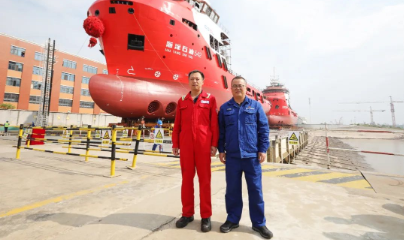 △每艘船下水時(shí),姚勝華都要去現(xiàn)場(chǎng)看一看(右)