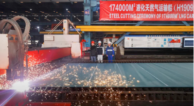 該項目的大型LNG運輸船均由滬東中華自主研發(fā)設計,擁有完全自主知識產權。首制船于2023年10月23日開工。