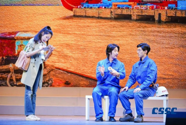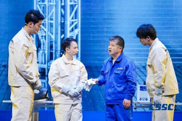 現(xiàn)場,來自中國船船集團(tuán)江南造船(集團(tuán))有限責(zé)任公司、滬東中華造船(集團(tuán))有限公司、上海外高橋造船有限公司、中船動力(集團(tuán))有限公司和中國船舶集團(tuán)公司第七〇二研究所的青年職工將真實(shí)工作案例與理論原文結(jié)合,將“發(fā)展新質(zhì)生產(chǎn)力”作為工作方向與指引,將他們的造船故事親身演繹。故事從《船舶青年說》起航,共講述了五大篇章,分別為江南造船如何延續(xù)百年初心、滬東中華造船LNG船毫厘鑄匠心、七〇二所從“蛟龍”號到“奮斗者”號將深潛進(jìn)行到底、外高橋造船“愛達(dá)?魔都號”大型郵輪“4個(gè)120天”的極限挑戰(zhàn)、江南造船“鋼鐵心臟”工程師攻克大型作戰(zhàn)艦建造的不凡創(chuàng)新路,臺詞鏗鏘有力、情感真摯流淌,繪就了一幅精彩的中國船舶夢畫卷。