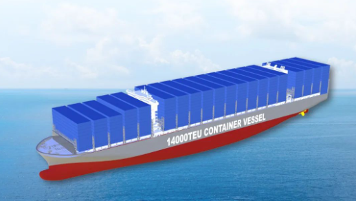 14000TEU甲醇燃料預(yù)留大型集裝箱船總長約336米,型寬 51米,型深30.2米,可裝載14170個20英尺標(biāo)準(zhǔn)集裝箱。采用最新設(shè)計(jì)理念,在常規(guī)燃料動力推進(jìn)系統(tǒng)基礎(chǔ)上,預(yù)留甲醇燃料推進(jìn)方案,可滿足船東后續(xù)綠色燃料改裝的需求。同時,配置脫硫塔及其他節(jié)能裝置,具有綜合能耗低、船舶快速性強(qiáng)和綠色環(huán)保優(yōu)等特點(diǎn),總體性能達(dá)到世界先進(jìn)水平,計(jì)劃于2026至2027年完工交付。