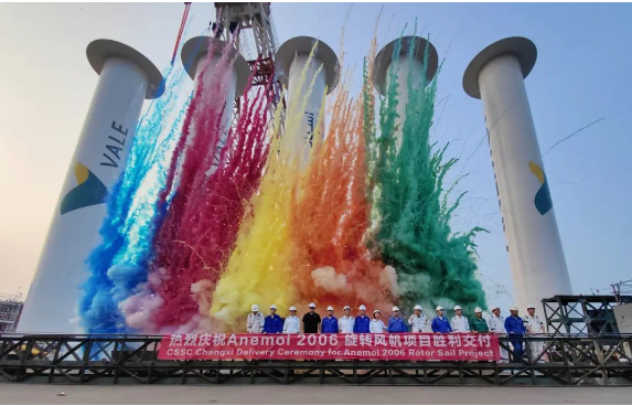 日前,中國船舶集團(tuán)旗下中船澄西為Anemoi Marine Technologies公司建造的最新型5套35米折疊式船用轉(zhuǎn)子帆順利交付發(fā)運(yùn)。據(jù)悉,該項(xiàng)目轉(zhuǎn)子帆將安裝在全球最大礦砂船——40萬噸級Valemax型“Sohar Max”號上,屆時(shí)將組成目前全球最大的風(fēng)力轉(zhuǎn)子推進(jìn)系統(tǒng),標(biāo)志著中船澄西在深耕綠色船舶節(jié)能減排、攻堅(jiān)轉(zhuǎn)子帆建造領(lǐng)域再次取得重大突破。