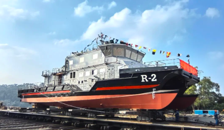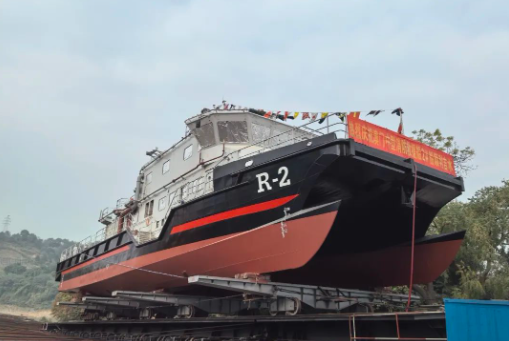 12月6日,中國(guó)船舶集團(tuán)旗下廣州公司承接七〇一所下屬武漢船舶設(shè)計(jì)研究院設(shè)計(jì)、桂江造船建造的澳門(mén)海關(guān)中型消防救援船“R-2”號(hào)下水