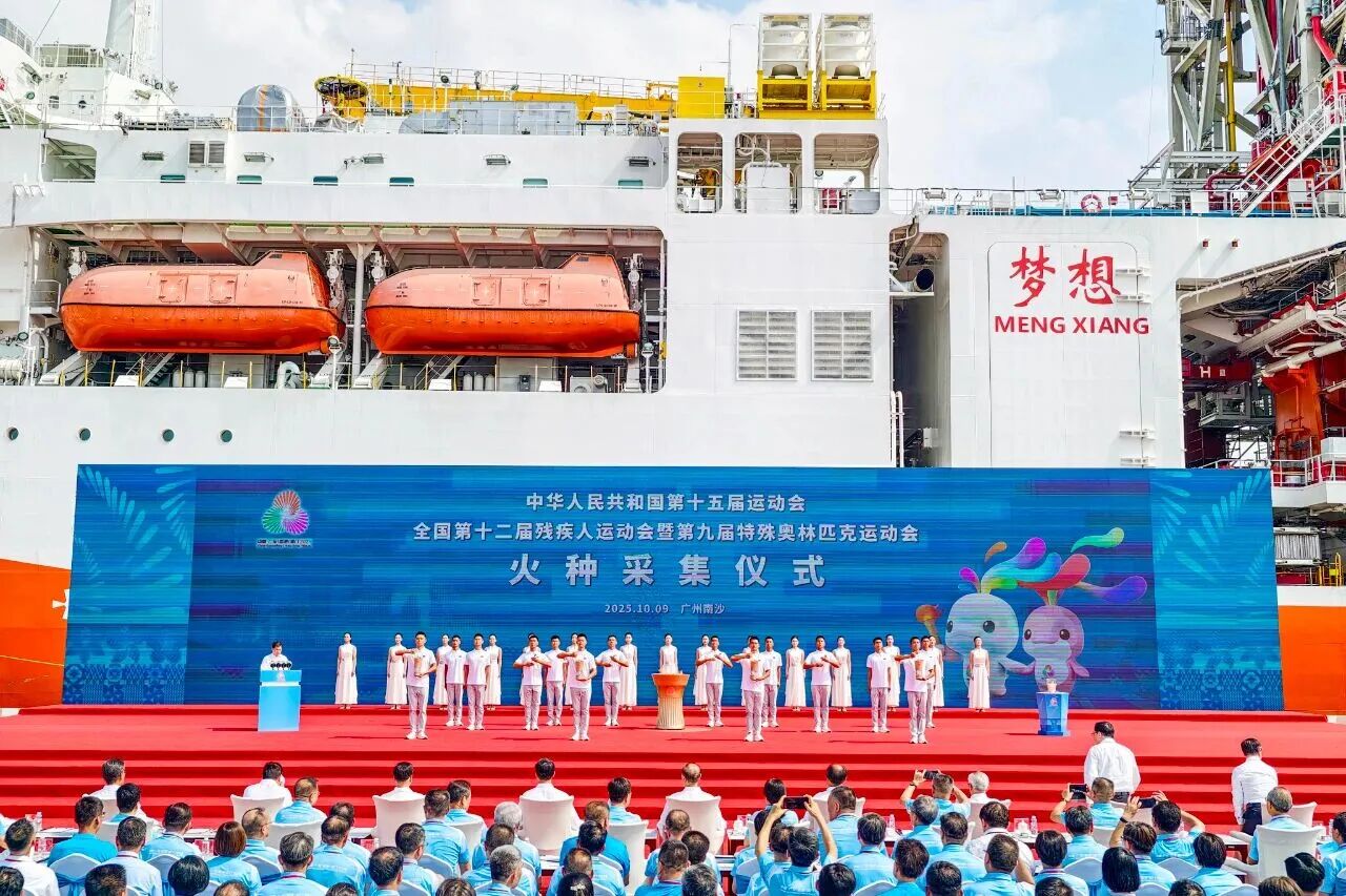 近日,在大洋鉆探船“夢想”號的見證下,第十五屆全國運動會和全國第十二屆殘疾人運動會暨第九屆特殊奧林匹克運動會火種采集儀式在廣州舉行。