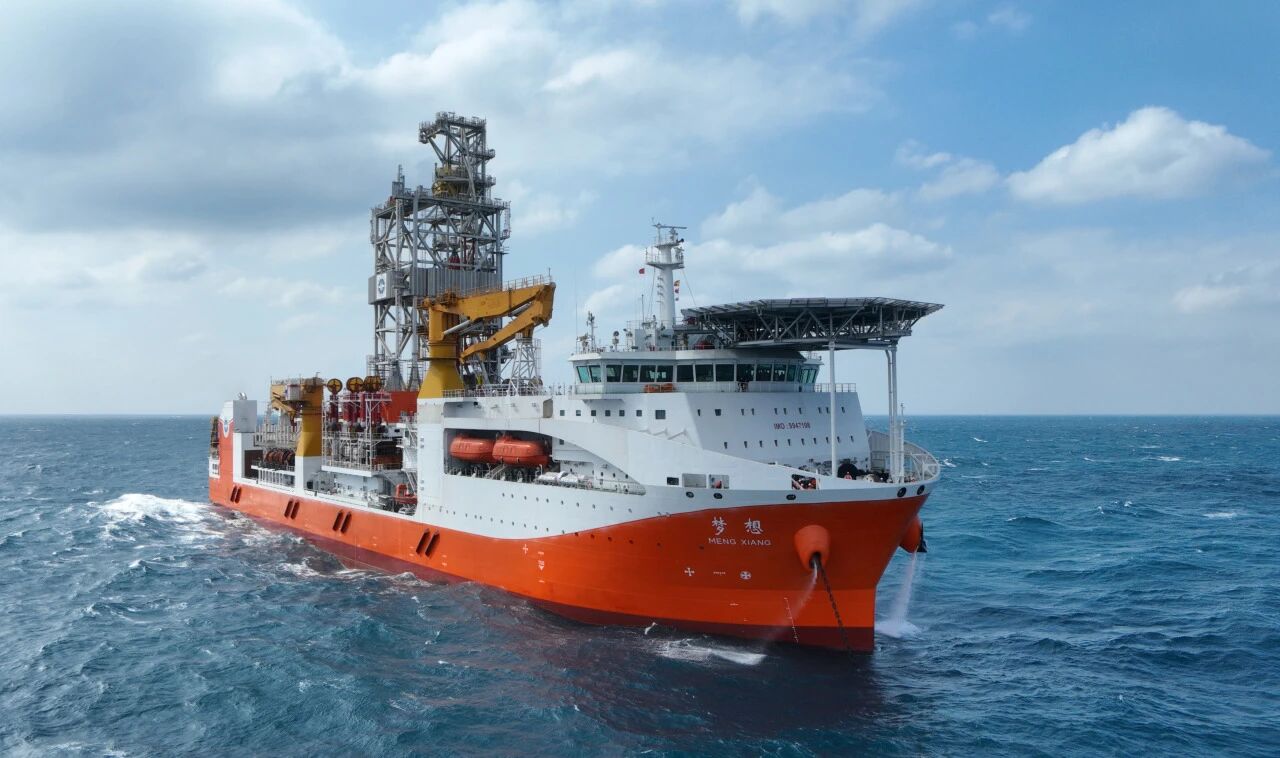 由中國船舶集團有限公司旗下黃埔文沖總成建造、七〇八所研發(fā)設(shè)計的我國首艘大洋鉆探船“夢想”號,于2024年11月17日正式入列。該船是“十四五”國家重大科技創(chuàng)新工程,最大鉆深11000米,可執(zhí)行大洋科學(xué)鉆探、深海油氣勘探和天然氣水合物勘查試采等任務(wù)。