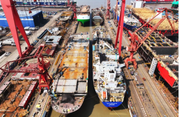 8月11日,中國船舶集團旗下江南造船4號船塢迎來一艘99000立方米超大型乙烷乙烯運輸船(VLEC)和一艘7800車位汽車運輸船(PCTC)出塢 ,一艘99000立方米VLEC半船和一艘7800車位PCTC半船同步起浮,達(dá)成了“PV同步”建造模式的首批次出塢。