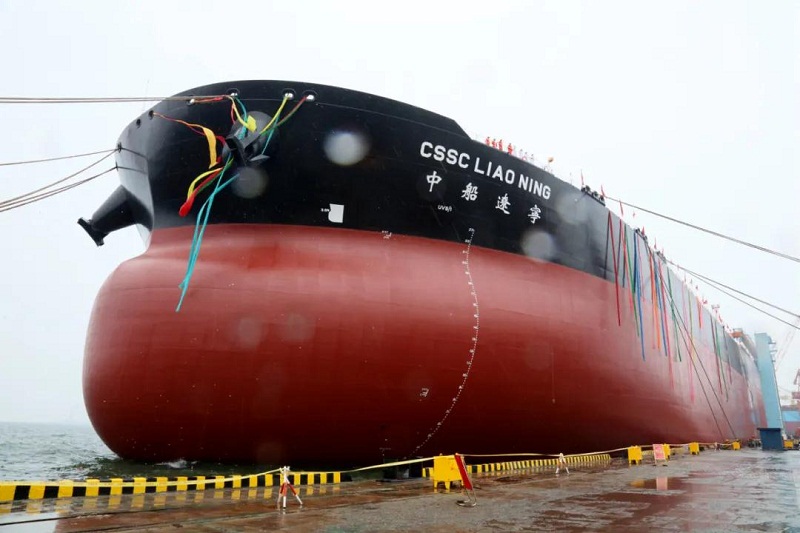 ????今天,中國船舶集團旗下大船集團為中船貿易所屬租賃公司建造的30.8萬噸超大型原油船“中船遼寧”號命名交付。“中船遼寧”號是大船集團自主開發的新一代極具市場競爭力的品牌船型。該船總長332.95米,型寬60米,最大載重量30.8萬噸,屬于無限航區船型,續航里程超過25000海里,在設計吃水20.5米可正常裝載200萬桶原油通過馬六甲海峽。