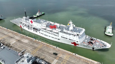 “絲路方舟”號醫院船羅吉星介紹:“作為一艘醫院船,它具備靈活的機動能力,能夠在災害發生第一時間迅速抵達災害地區,提供醫療援助服務,還具備多種換乘能力和轉移手段,在不具備靠泊條件的災害地區可以通過直升機和救護艇,將醫護人員和醫療物資轉運上岸,或者通過同樣的方式將我們傷病員轉運至醫院船進行醫療救治。