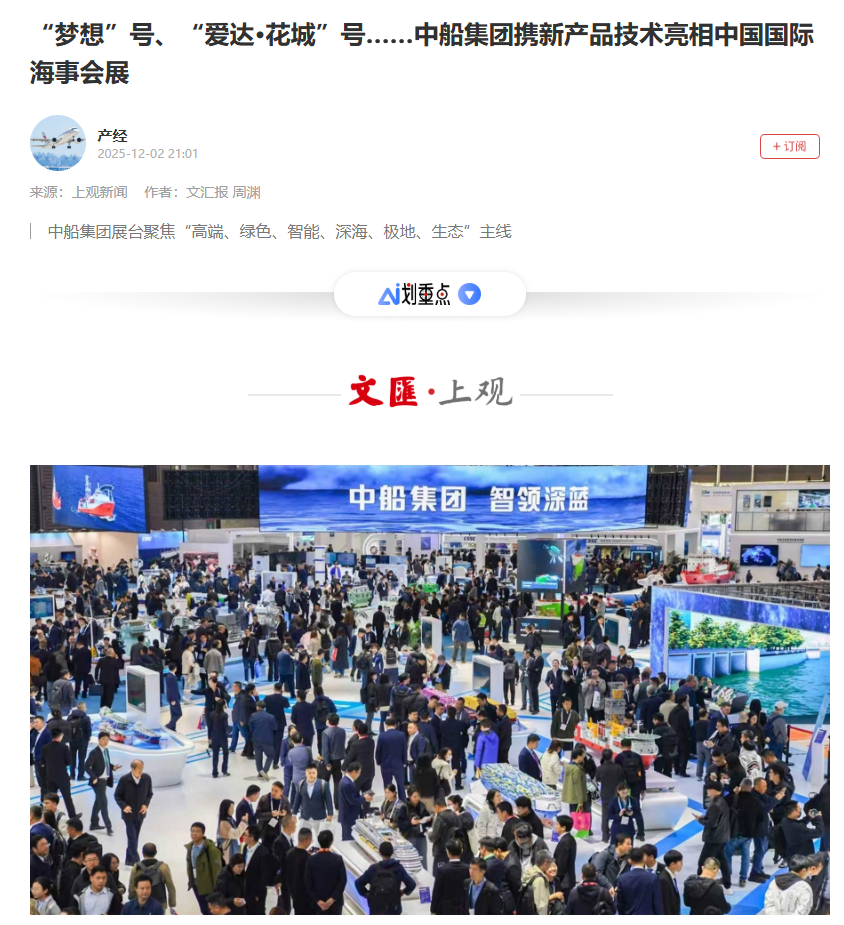 12月2-5日,2025中國(guó)國(guó)際海事會(huì)展期間,中國(guó)船舶集團(tuán)有限公司攜眾多新產(chǎn)品新技術(shù)精彩亮相,并圍繞六大領(lǐng)域舉行了40多場(chǎng)發(fā)布及推介活動(dòng)。