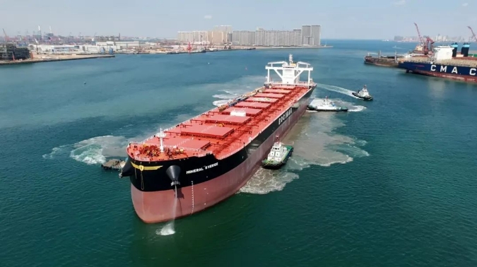 4月23日,中船集團北海造船聯合中船貿易,向比利時CMB.TECH公司成功交付第14艘21萬噸級"MINERAL SVERIGE"號散貨船,該船也是北海造船今年累計交付的第7艘船舶。