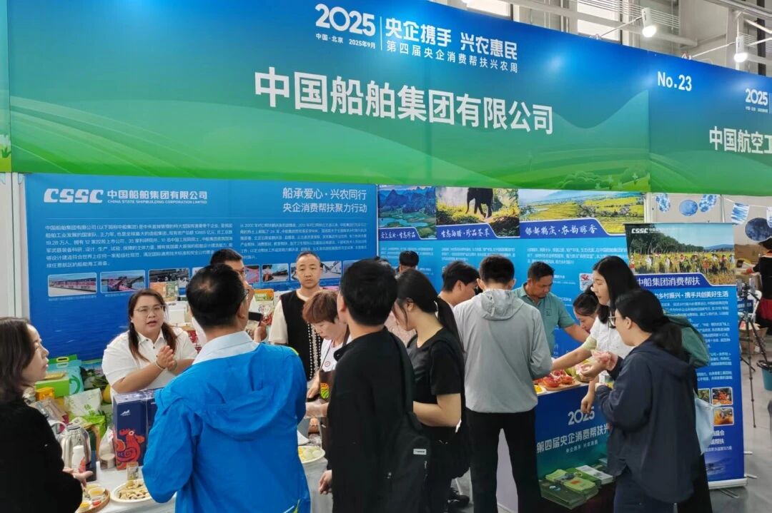 9月19日,以“央企攜手,興農(nóng)惠民”為主題的第四屆“央企消費幫扶興農(nóng)周”活動在北京正式啟動。中國船舶集團(tuán)有限公司在同期舉行的特色農(nóng)產(chǎn)品展銷會上精心布置了特色展區(qū),現(xiàn)場展銷來自其定點幫扶的鶴慶、勐臘、丘北三縣的110款優(yōu)質(zhì)特色農(nóng)產(chǎn)品。