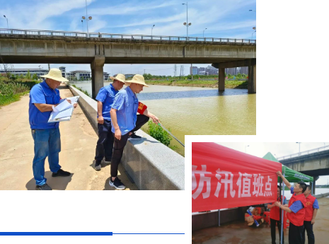 九江公司嚴格落實八里湖新開河西堤責任堤段防汛工作任務,組織志愿隊伍60余人次駐堤值守。
